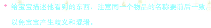 比如,寶寶指著開(kāi)過(guò)去的車,是在表達(dá)他看見(jiàn)了車,你可以說(shuō)“嗯,寶寶看到了車車,車車開(kāi)走嘍”。 寶寶指著桌上的蘋果,表達(dá)他想吃,這時(shí)要說(shuō)“寶寶要吃蘋果,媽媽幫寶寶拿蘋果”。